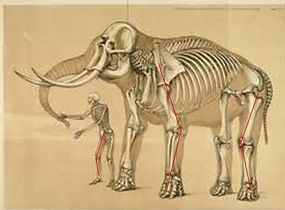 l’éléphant possède la même disposition des os et articulations que les humains, sur ses pattes arrières, mais une disposition « inversée » sur ses pattes avants : son genou est à l’envers.